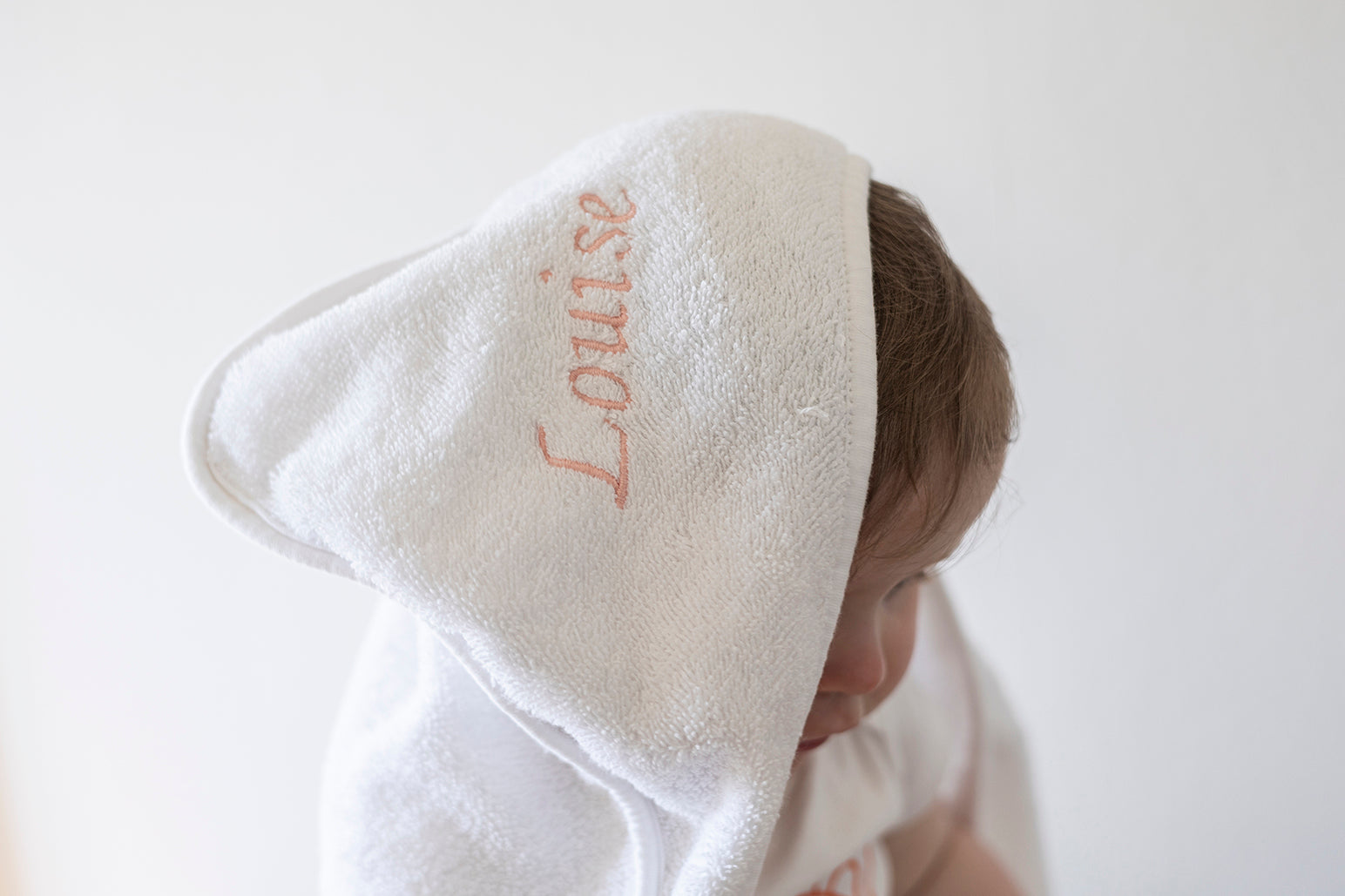 Na een heerlijk badmoment is er niets fijner dan je baby liefdevol inwikkelen in een zachte, warme handdoek. Deze babyhanddoek is speciaal ontworpen voor de allerkleinsten, met uitstekend absorptievermogen en extra comfort, met op de kap de naam van je kindje geborduurd.