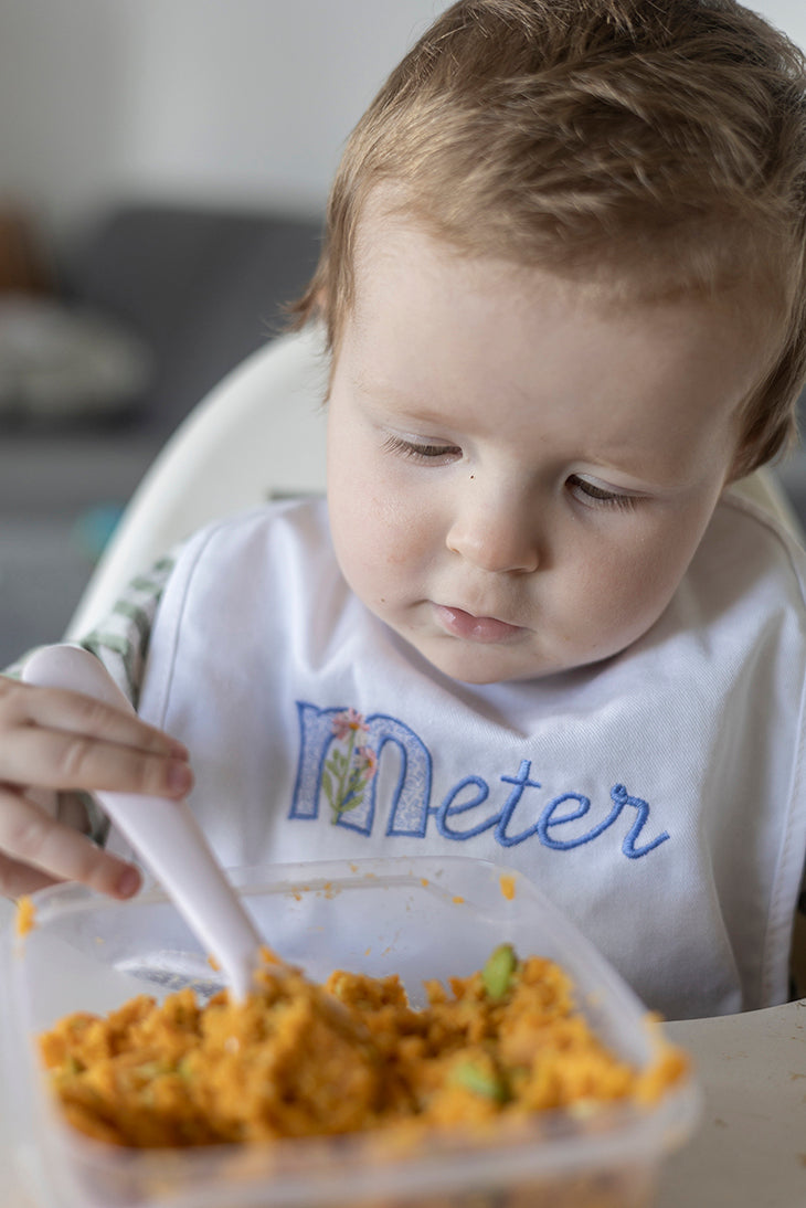 De kleuren kunnen volledig aangepast worden naar wens, waardoor het een uniek en persoonlijk geschenk wordt. Daarnaast is het niet alleen mooi, maar ook praktisch: later, wanneer je kindje bij zijn of haar meter of peter blijft eten, komt het slabbetje uitstekend van pas.